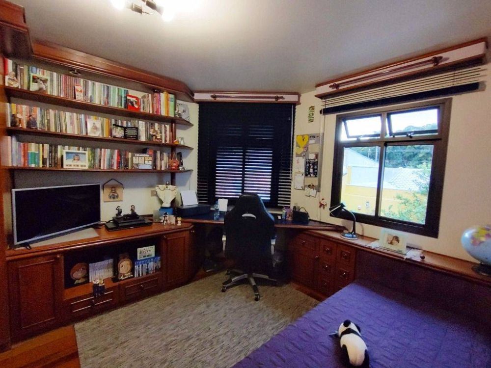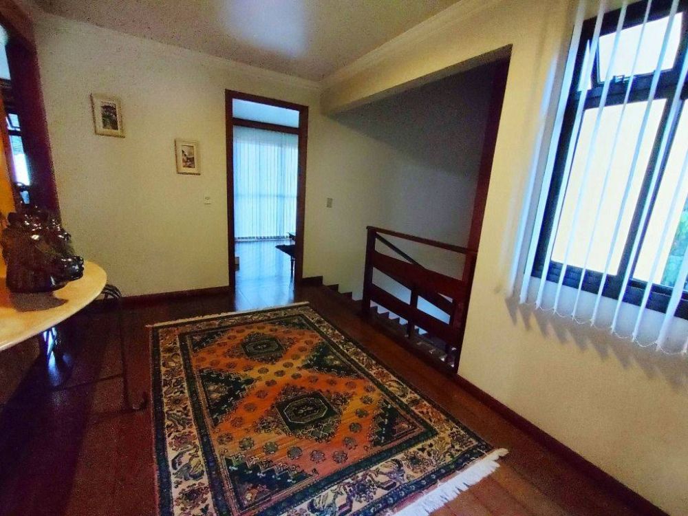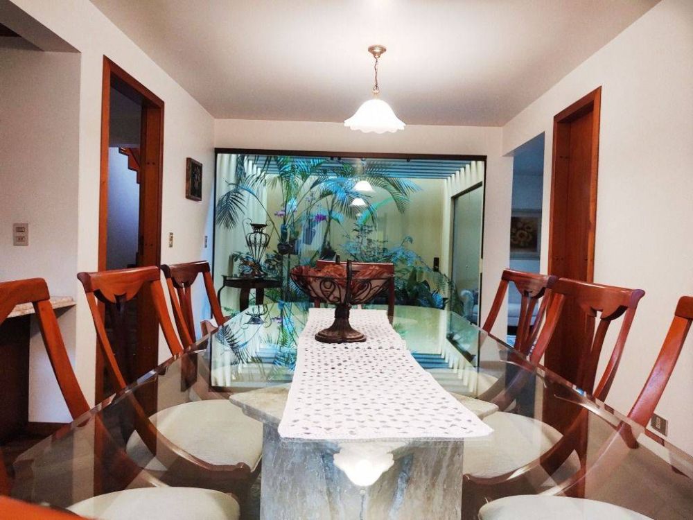 Este anúncio descreve uma casa à venda no Bairro Boa Vista em Curitiba. A propriedade possui um terreno de 360m2 e uma área construída de 253,40m2. A localização é boa, em uma rua calma, com uma grande área verde ao redor. A casa possui um lindo projeto de jardim de inverno fechado em vidro entre as salas de estar e jantar, além de um jardim na entrada da casa bem cuidado. Nos fundos, há árvores frutíferas, um canil e espaço para entrar em contato com a natureza. Também há um espaço gourmet com churrasqueira, lavanderia, cozinha planejada, despensa e lavabo. No piso superior, há 3 amplos quartos, todos com suíte, uma charmosa e aconchegante sala de estar com lareira e sacada com guarda-corpo em vidro com vista para o quintal. Os acabamentos incluem piso de madeira Jatobá nos quartos e salas, além de pisos e azulejos de excelente qualidade da marca Incepa nas áreas frias. Todos os ambientes possuem móveis planejados e há um aquecedor elétrico (boiler). A casa também conta com segurança, com monitoramento 24 horas.